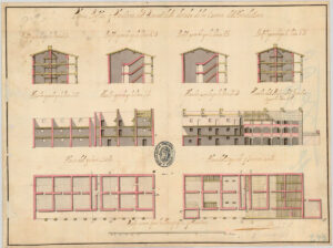 Els edificis tenen planta rectangular, tres pisos d’alçada i una coberta a doble vessant. A la part central se situava l’escala principal, mentre que un corredor exterior permetia l’accés a les cambres, disposades en doble fila. Tots els allotjaments eren iguals i disposaven d’una llar de foc, que servia tant per escalfar l’espai com per cuinar.