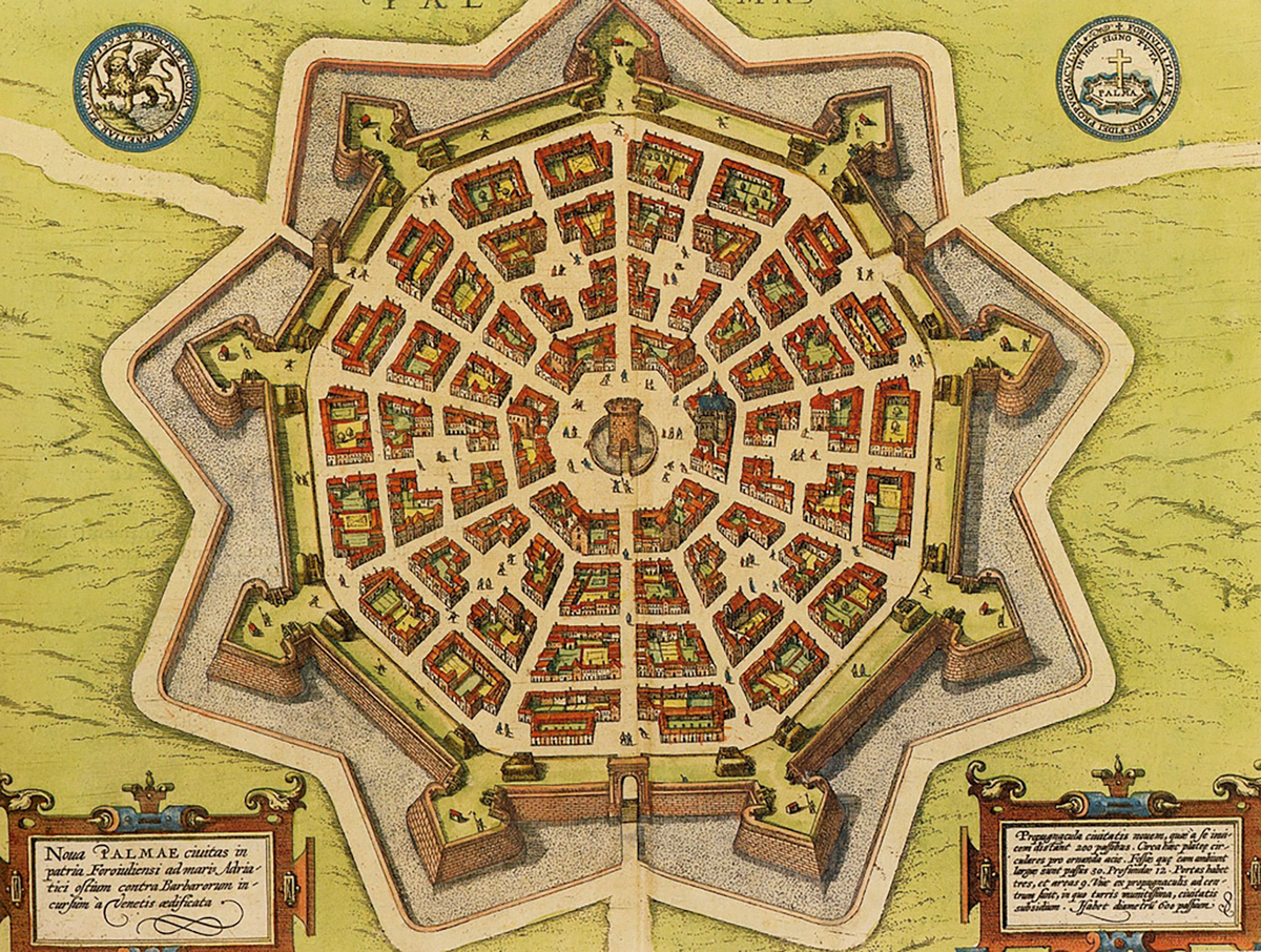 La nova fortalesa plantejava, tanmateix, alguns reptes d’organització interna. En les fortificacions de nova planta era habitual adoptar una disposició amb un gran espai central —la plaça d’armes— del qual partien diversos carrers disposats radialment, com els radis d’una roda. Aquest esquema, conegut com a pla radiocèntric, permetia un desplegament ràpid de les tropes cap a les muralles i els baluards en cas de necessitat.